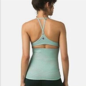 NWOT PRANA Wonder Often Striped Tank Top Teal Blue Open Back Women's Size Small