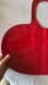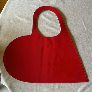 Gorgeous heart shaped tote with magnetic closure and completely open on the inside for maximum storage! Bright red and surprisingly comfortable on the shoulder! There is still a small crease in the middle that When purchased, I will ship in a flat box and will not fold.
