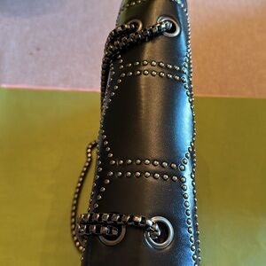 Brand new with no flaws! Gorgeous studded handbag with metal chain that can be adjusted to be cross body or shoulder bag. The button closure is designed to only be functional on the left side in order to open and close the bag. The right button is just for show. This bag looks far more high-end than expected