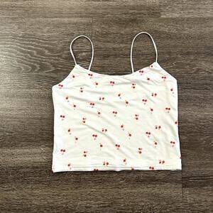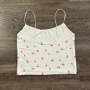 🍒 NWOT Pacsun Basics White Cherry Print Crop Cami Tank Top Size Small Y2K Cute