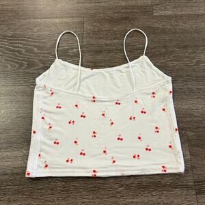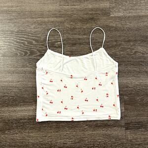 Pacsun Basics White Cherry Print Crop Cami Tank Top Size Small Y2K Cute