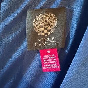 Beautiful blue jersey dress from Vince Camuto. Ruching on the side and padded shoulders flatter and add nice details to the dress.