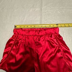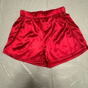 Women’s satin pajama set sleepwear round neck T- shirt/ shorts in red size small. the top is an oversized style. In excellent new condition