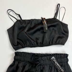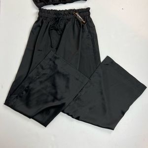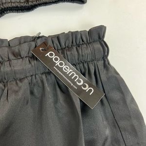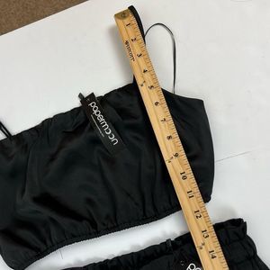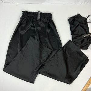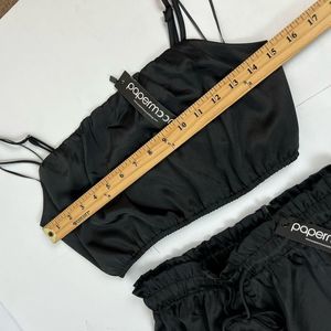 NWOT Paper Moon NWT Black Satin Two Piece Crop Top Set Womens Size Small