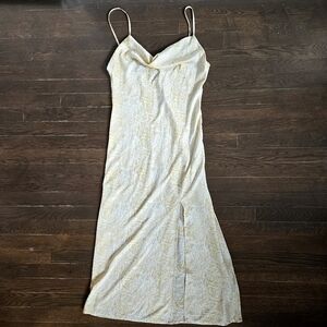 NWOT Paper heart yellow floral roses cottage satin cowel neck slip dress sz M