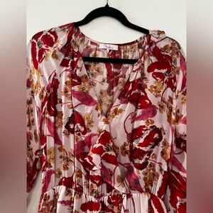 NWOT Parker Bertie Silk Midi Floral Dress in Shades of Reds, Long Sleeve, Size M