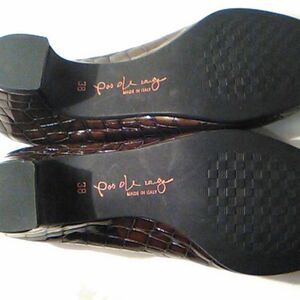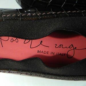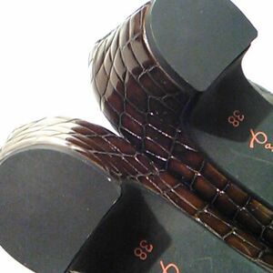 NWOT Very pretty and unusual heels that are comfortable and stylish. Reptile embossed patent leather inside and out. Padded footbed. Elastic trim on top hugs your foot while being super comfy. Size 38 (8) measures 3 3/8 wide, 11 long, 2 1/2 inch heel. Simply perfect.