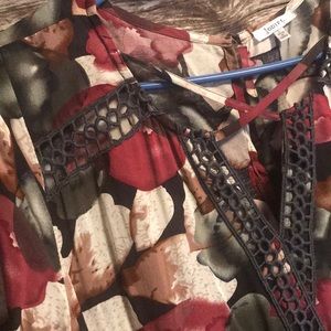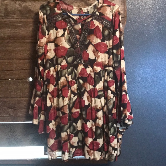 Gorgeous pattern with fall colors. This can be worn as a dress or as a Tunic. Detailing around the neckline is very flattering. Sleeves flare at the end to add additional unique qualities. Never been worn and is in mint condition.