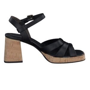 This new Paul Green sandal is retro-cool, featuring a cork-inspired block heel and square toe. The adjustable ankle strap makes it easy to fit, and the latex sole and padded insole provide added comfort.
