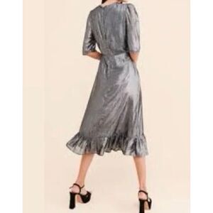 NWOT Paul & Joe Sister Anthropologie Majestee Metallic Silver Ruffled Midi Dress