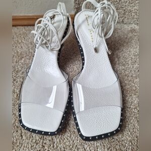 NWOT Paula Torres Ankle Wrap Square Toe White/Clear Kitten Heel Womens Size 8