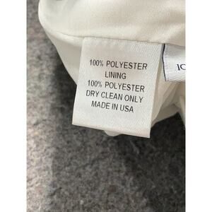 This is a white lace tank top by Lela Rose, featuring a daisy design. It is a size 6 and has a regular fit. The fabric type is lace, adding a delicate touch to the piece. The tank top is adorned with a subtle rose theme, adding a touch of elegance to the overall design.