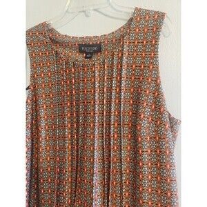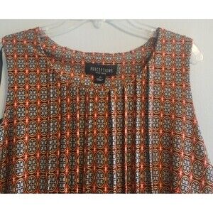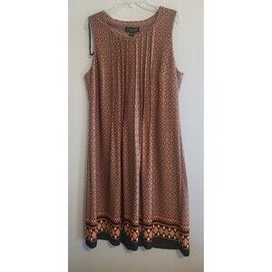 NWOT Perceptions Womens ALine Dress 14 Orange Black Pleated Stretch Sleeveless
