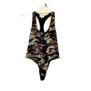 NWOT Petal Dew Swimsuit Bodysuit XL Camouflage Pattern Racerback Front Zip