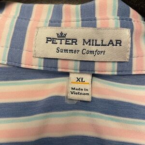 NWOT Peter Millar Polo short Sleeved Shirt Blue Stripe Size XL golf, designer