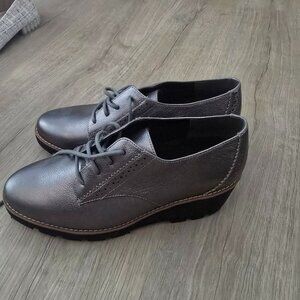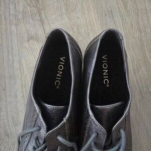 NWOT Pewter Leather Vionic Women's Anaheim Comfort Wedge Oxford Derby Shoes