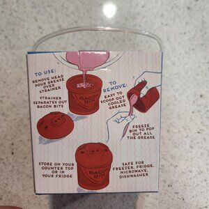 Never used! Got as a gift but already had one - and love it! Retails for $16.95. See: https://www.surlatable.com/product/talisman-designs-bacon-bin-grease-holder/4245361?mrkgadid=1&mrkgen=gpla&mrkgbflag=0&mrkgcat=cat&acctid=21700000001683301&dskeywordid=92700080010308148&lid=92700080010308148&ds_s_kwgid=58700008708461730&ds_s_inventory_feed_id=97700000008343482&dsproductgroupid=1967131408030&product_id=4245361&merchid=5755698&prodctry=US&prodlang=en&channel=local&storeid=%7Bproduct_store_id%7D&device=m&network=g&matchtype=&locationid=%7Bloc_phyiscal_ms%7D&creative=697681128901&targetid=pla-1967131408030&campaignid=21236051269&adgroupid=160237148383&&affsrcid=AFF0005&utm_source=google&utm_medium=cpc&utm_term=&utm_campaign=21236051269&creative=697681128901&device=m&matchtype=&nbt=nb%3Aadwords%3Ag%3A21236051269%3A160237148383%3A697681128901&nb_adtype=pla&nb_kwd=&nb_ti=pla-1967131408030&nb_mi=5755698&nb_pc=local&nb_pi=4245361&nb_ppi=1967131408030&nb_placement=&nb_li_ms=&nb_lp_ms=&nb_fii=&nb_ap=&nb_mt=&gad_source=1&gclid=CjwKCAiA-Oi7BhA1EiwA2rIu295865P-S56-cHui4j8rHXYnvZ-MdqvfIBtQR3HsQQ8UsxfisD46GBoCxscQAvD_BwE&gclsrc=aw.ds