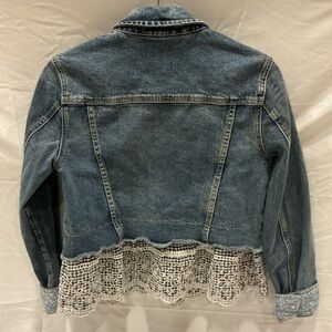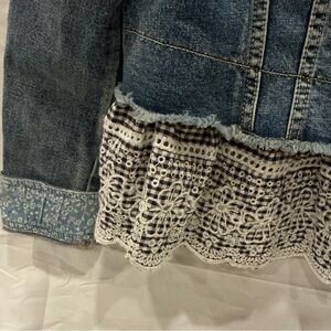 NWOT Pilcro Anthropologie Denim Jacket w Crochet Lace Hem Boho Chic size Medium