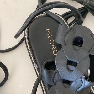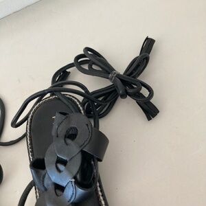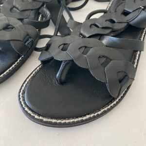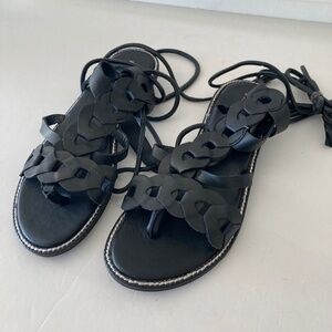 NWOT Pilcro Anthropologie Gladiator Black Leather Tie Up Sandals Sz 8