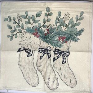 NWOT Pillow Cover Christmas Stockings and Holly. Fits 16" x 16" pillow form