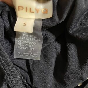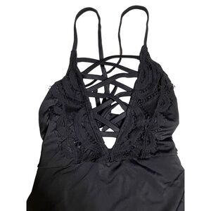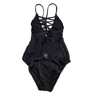 NWOT PilyQ Solid Black Faux Lace Up V Neck One Piece Swimsuit Sz. S