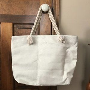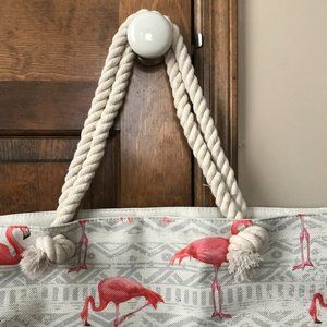NWOT Pink Flamingos on Pearl and Gray Tote Bag w/Thick Rope Double Handles