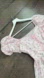 Charming pink dress with floral pattern. Features puff sleeves and a flowing skirt.