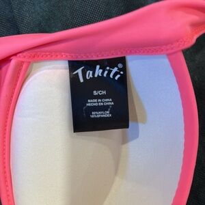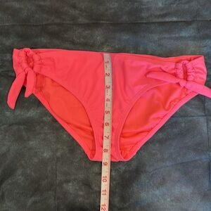 Stylish pink halter bikini set. Features a bow detail on the top and bottom. Puss up for the top size S bottom size M