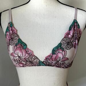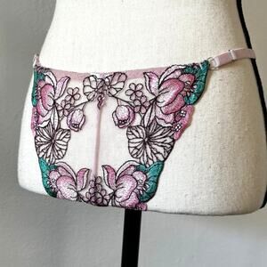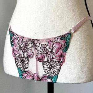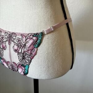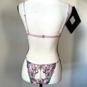 NWOT Pink Lace Floral Embroidery 3 Piece Lingerie Set Womens Sz S Sheer Bralette