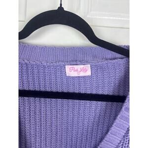 NWOT Pink Lily Crochet Sleeve Cardigan Sweater Women’s Size Large Purple Boho