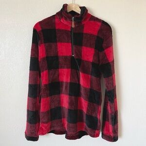 NWOT Pink Lily Glittering South Red Buffalo Plaid Quarter Zip Pullover