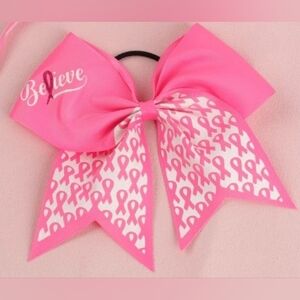 NWOT Pink Oversized Breast Cancer Bow with Elastic Tie