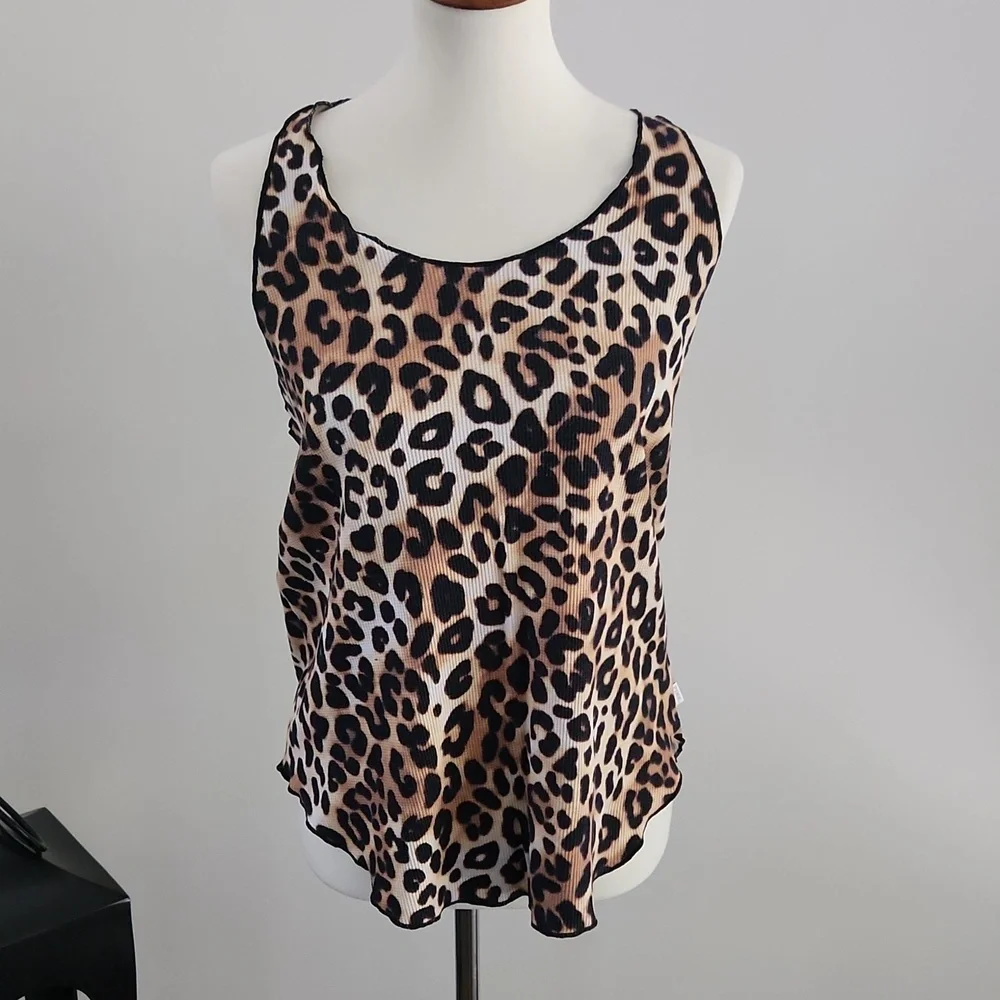 Leopard print, waffle textured racerback top from PINK. Oversized fit, never worn, size medium