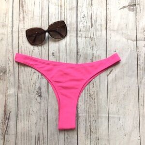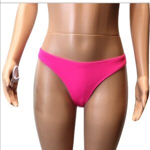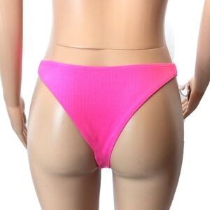 Neon Pink Ribbed High Cut Cheeky Bikini Bottoms Size Medium.