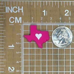 This fun Croc charm is in the shape of Texas in a beautiful pink color, with a white heart in the middle.