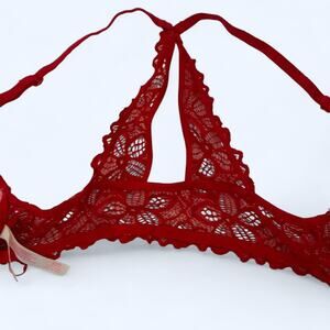 NWOT Pink Victoria's secret red lace balconette padded bra and clasp in front