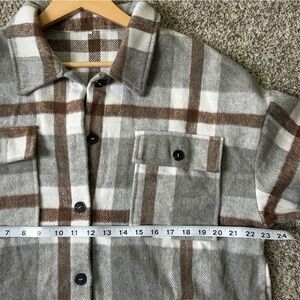 NWOT Plaid Gray and Brown Women's Jacket Shacket Button Down Sweater Casual XL