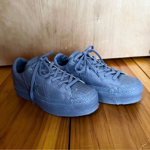 New without tags platform Converse sneakers. Blue with a snakeskin material. Super unique!