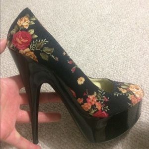 BRAND NEW WITHOUT TAGS-- Never worn!! Size 8, True to size... 6" heels and 1-1/2" platform at toes. Remarkably comfortable!! (Only tried on, never worn outdoors!) Beautiful Black canvas floral print with tones of red, orange, light green, hints of white & tan-- best seen in last picture. All tags & stickers removed. MAKE AN OFFER-- MUST SELL!!! ❤️🖤❤️🖤❤️🖤❤️🖤