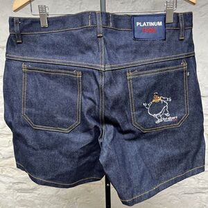 NWOT Platinum Fubu Mens Blue Fat Albert Dark Wash Flat Front Jean Shorts Size 34. These measure a little larger than a 34 see below for best fit.