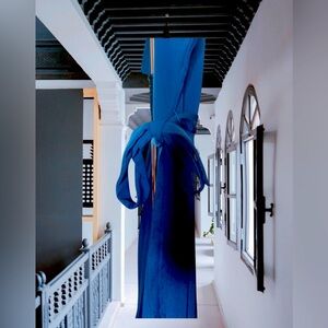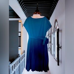 NWOT Pleated Fabric Round Neck Self Waist Belt Dress