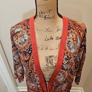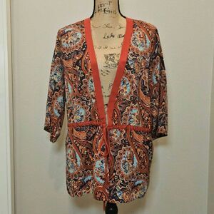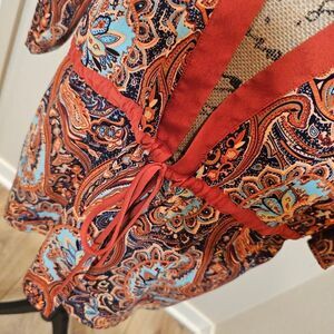 NWOT Pleione Paisley Short Kimono Top with Drawstring Size Small