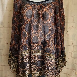 NWOT Plenty by Tracy Reese Anthropologie Chiffon Boho Print Peasant Top sz.S