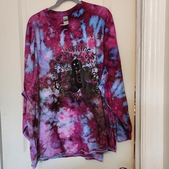 NWOT Plus Size Gildan Gingerbread Christmas Ice Tie Dye Long Sleeve T-Shirt 4XL