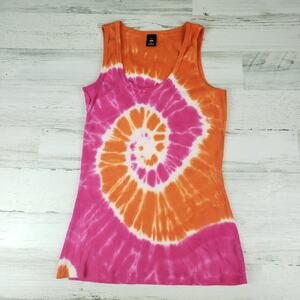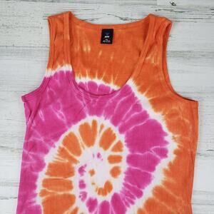 NWOT Point Sportswear Ribbed Tie Dye Orange Pink Spiral Tank Top Women's Medium