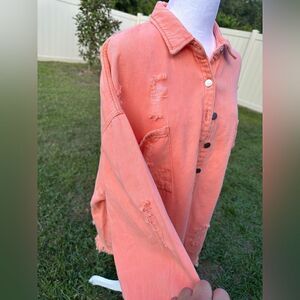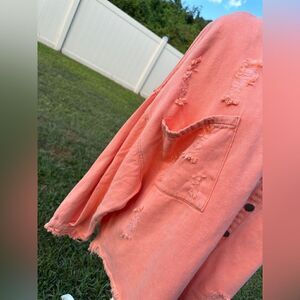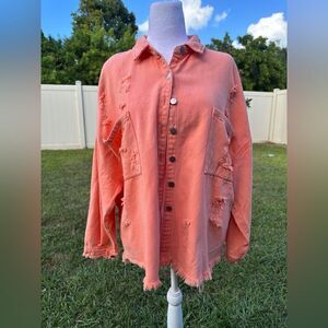 NWOT Pol boho frayed boho chic coral peach button up Shacket Sz M