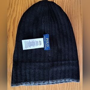 NWOT Polo Ralph Lauren Black & Grey Ribbed Wool Blend Unisex Beanie Hat Cap