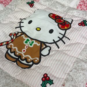 This is a new without tag, open box item. The Hello Kitty® Gingerbread Quilted has sold out online. It is made with cotton and hand quilted, filled with polyester. The sham has a patchwork style and reverses to a floral pattern with an envelope style closure. Machine washable.