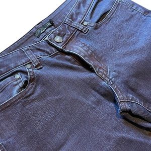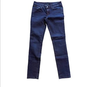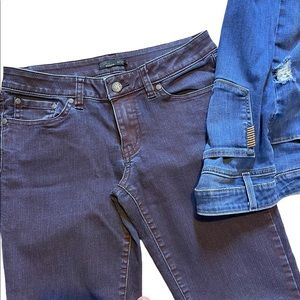 NWOT Prana skinny jeans in a dark blue purple hue. Picture two shows them next to a pair of blue jeans for color comparison. Size 4/27.