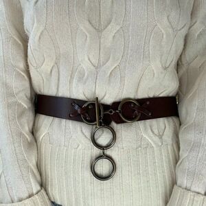 NWOT Preston and York Womens Brown Italian Leather Hippie Waist Belt Sz M